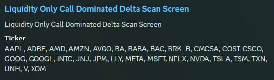 CallDomDel: Returns stocks that are call dominated below and above spot price, which are signatures of bullish structures.
