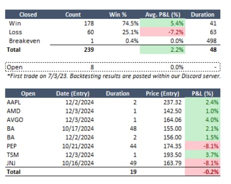 This is our 100% mechanical portfolio with ~1.5 years of live forward testing results shown below, along with current option positions.