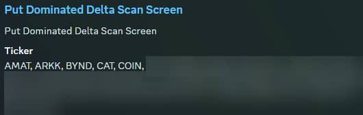 PutDomDel: Returns stocks that are put-dominated above and below spot price, which are a signature of bearish structures. This is an ideal 'pond to fish in' if you are looking for names to short (or names you should avoid going long if bullish).