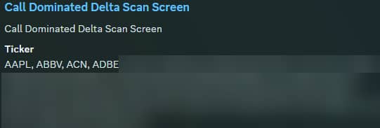 CallDomDel: This scan returns stocks that are call-dominated above and below spot price, which are a signature of bullish structures. This is an ideal 'pond to fish in' if you are looking for names to get long (or names you should avoid shorting if bearish).
