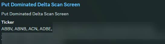 PutDomDel: Returns stocks that are put-dominated above and below spot price, which are a signature of bearish structures. This is an ideal 'pond to fish in' if you are looking for names to short (or names you should avoid going long if bullish).