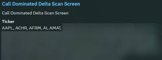 CallDomDel: This scan returns stocks that are call-dominated above and below spot price, which are a signature of bullish structures. This is an ideal 'pond to fish in' if you are looking for names to get long (or names you should avoid shorting if bearish).