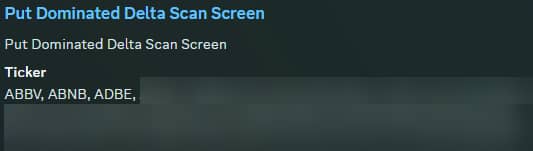PutDomDel: Returns stocks that are put-dominated above and below spot price, which are a signature of bearish structures. This is an ideal 'pond to fish in' if you are looking for names to short (or names you should avoid going long if bullish).