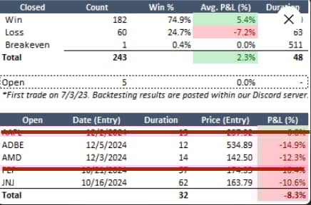 This is our 100% mechanical portfolio with ~1.5 years of live forward testing results shown below, along with current option positions.
